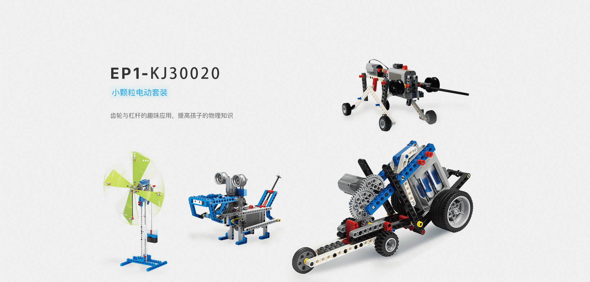 EP1系列产品由电动马达、电池供电部分和多种积木配件组成。是一款训练大脑逻辑思维的电动科教物理启蒙的教学积木,丰富的积木满足多种机械装置的拼搭需求,充分训练孩子的动手、动脑能力。