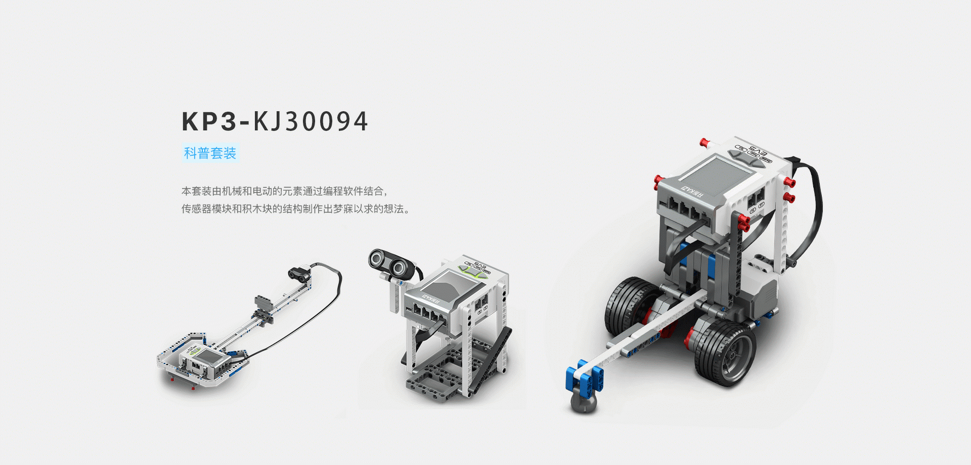 科普套装产品是专门为中小学开发的为了普及steam教育的科普产品,该系列产品是便于学生了解机器人基础知识以及编程入门,通过多种套装系列由浅入深,逐步由了解机器人机械原理过渡到机器人编程入门学习,是非常适合科普培训学习系列产品。