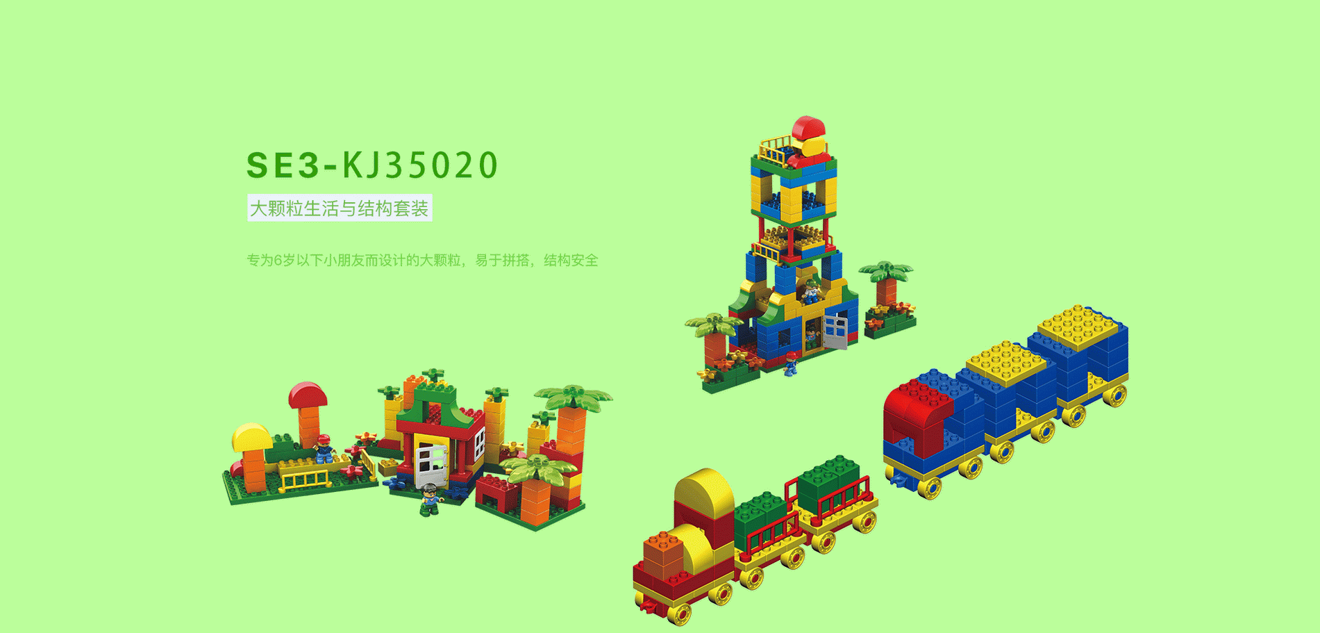 生活与结构套装是专门为6岁以下小朋友而设计的大颗粒积木早教产品,产品造型百变、易于拼搭。丰富的色块和颗粒选择,自由拼搭,激发创造力